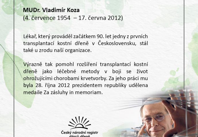 Dnešní den bychom rádi věnovali vzpomínce na muže, bez kterého by mnoho pacientů svoji druhou šanci nedostalo a bez kterého by tu nebyl ani náš registr. “Svět mění ti, kteří přijedou darovat kostní dřeň, vrátí