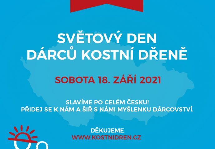 Přijměte pozvání na Světový den dárců kostní dřeně, který letos připadne na sobotu 18. 9. 2021. Společně s našimi spolupracovníky pro vás chystáme několik náborů! Lokality, kde nás najdete: PRAHA v ZOO: https://bit.ly/390LQsv PRAHA na