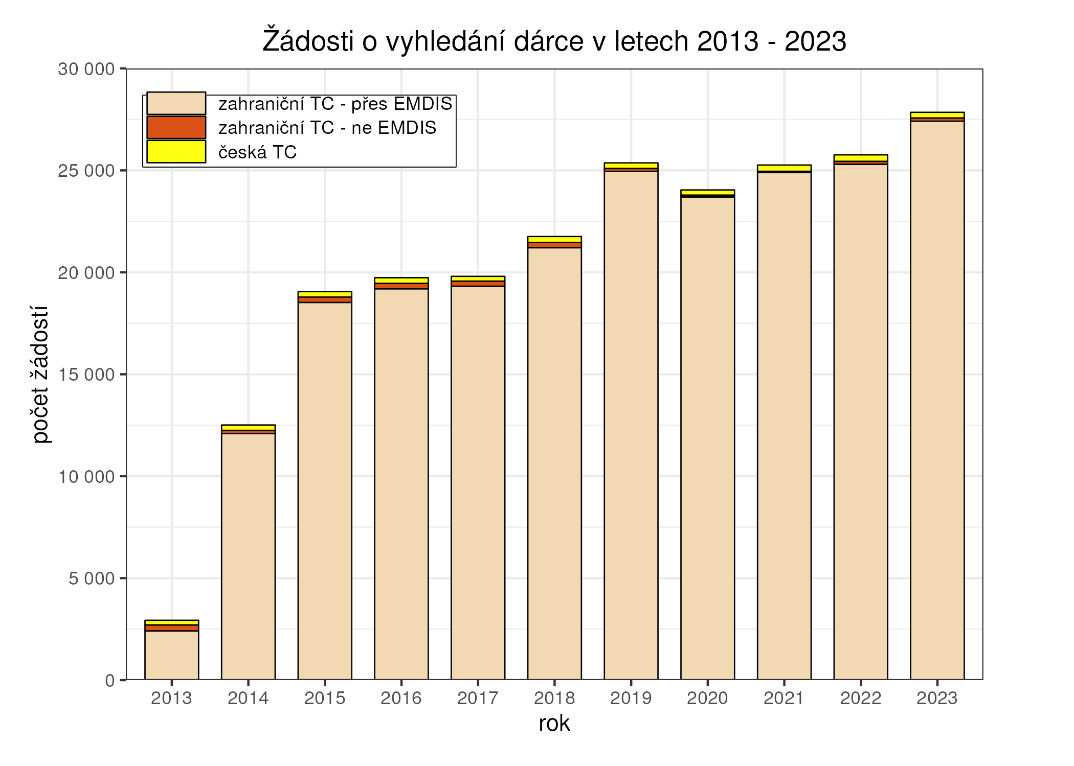 Žádosti o vyhledávání dárce v letech 2013-2023