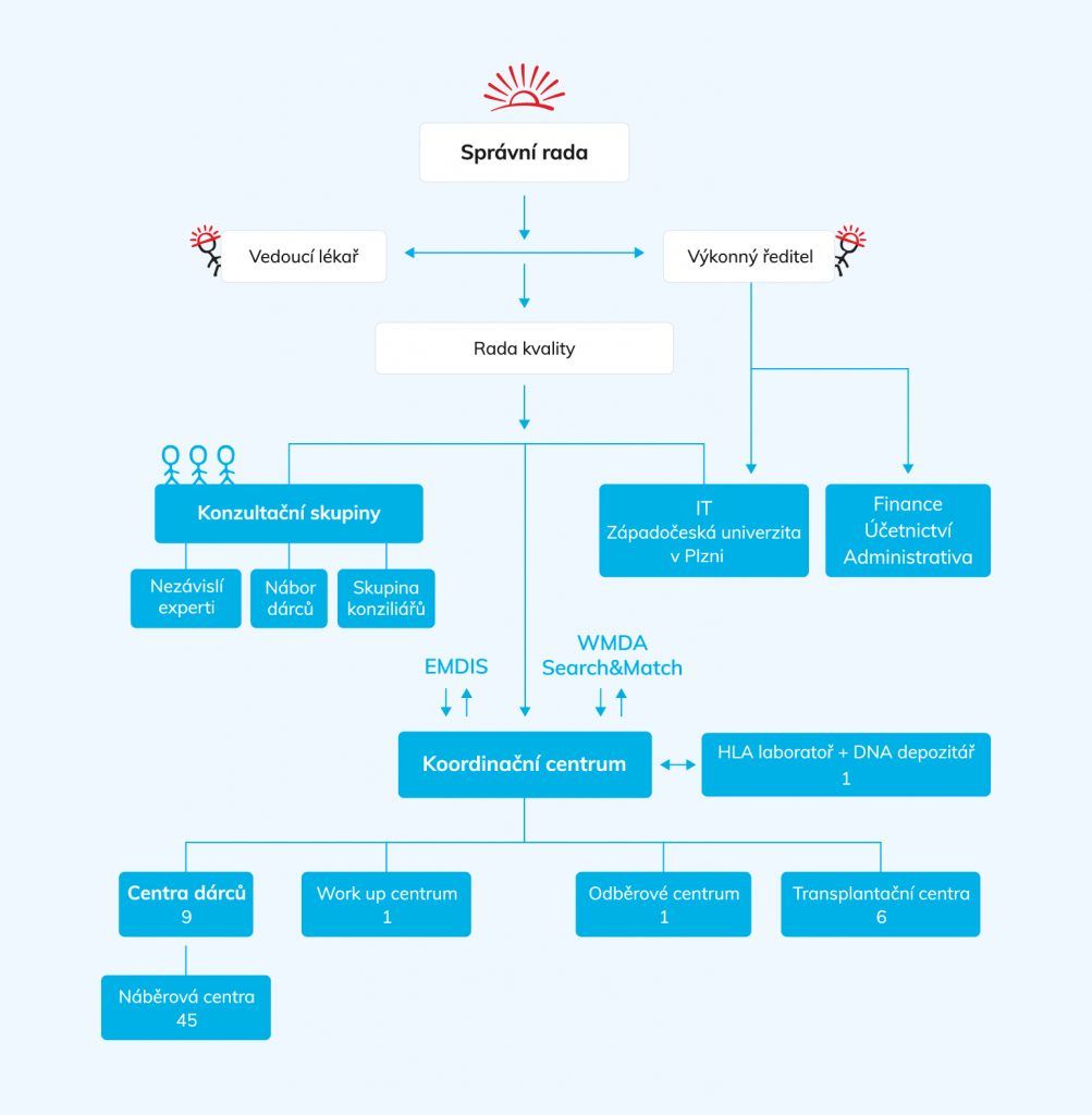 Český národní registr dárců dřeně je obecně prospěšnou společností, založenou Nadací pro transplantace kostní dřeně jako samostatný právní subjekt. Dle zákona č. 248/1995 Sb. Občanského zákoníku České republiky o obecně prospěšných společnostech je zapsán od 31. 12. 1998 Krajským obchodním soudem v Plzni pod spisovou značkou O7.